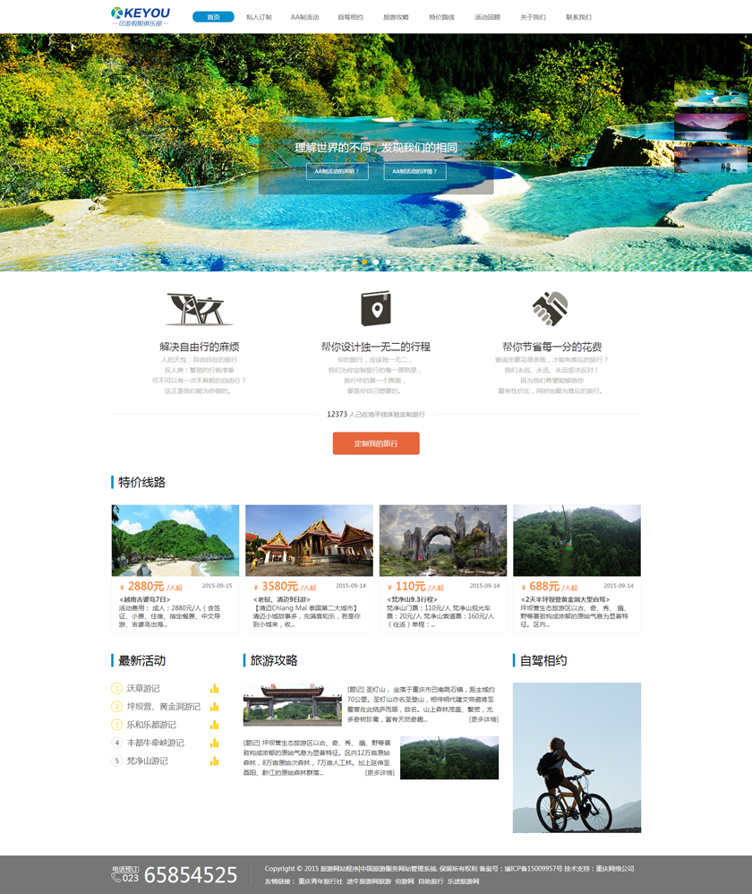 Project Description 6人游旅行网隶属于北京六人游国际旅行社有限公司。打造“为爱出行”:专为家庭,朋友,情侣间的旅行,提供私家小团精品游。打造高品质的旅行产品,解决传统跟团游和自由行存在的问题,将旅行服务做到臻善臻美。 Official website address 中卫http://www.keyoujq.com I want to share